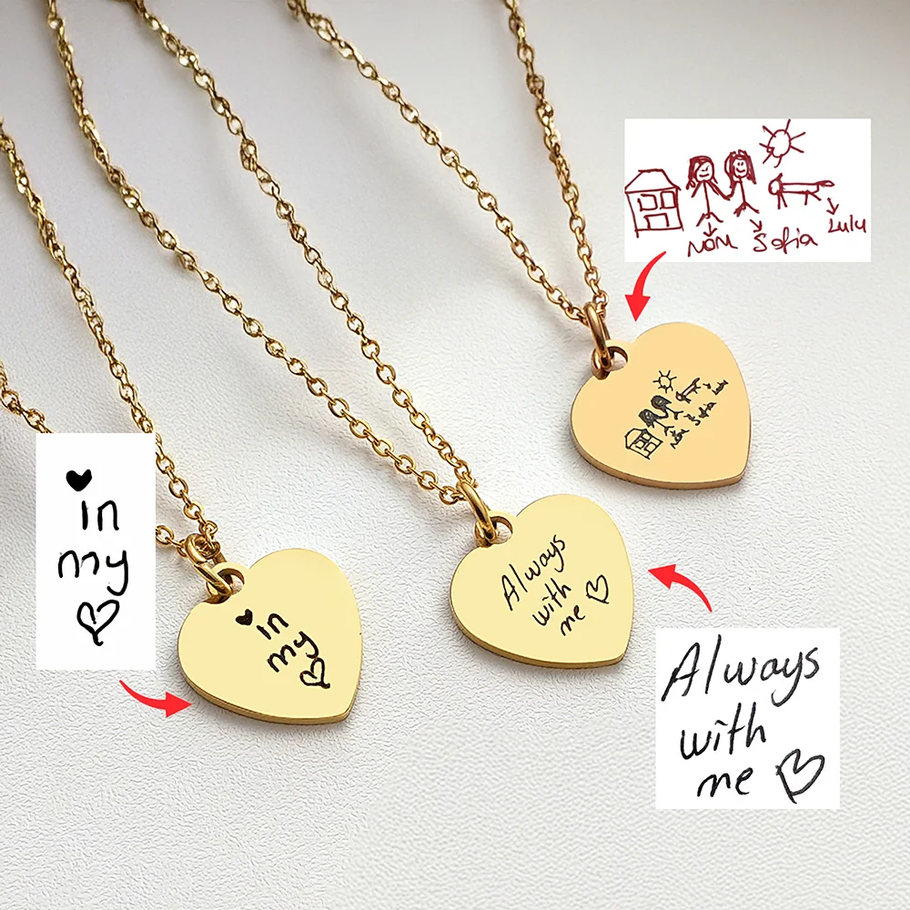 Turn a cherished handwritten note from a grandparent into a timeless jewelry piece. Simply send us a photo of a gift card, letter, or note, and we’ll engrave their words onto a necklace—preserving their love in the most personal way. A beautiful way to keep them close, always.