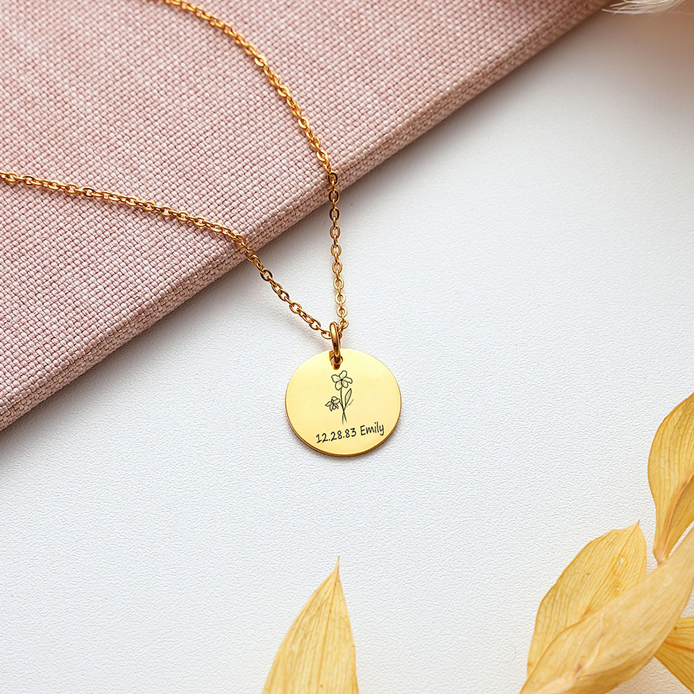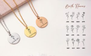 | Make your bridal party feel cherished with this custom birth flower necklace, a timeless piece that blends beauty and meaning. Each necklace is engraved with a name and paired with the recipient’s birth flower, creating a delicate keepsake she’ll treasure forever.