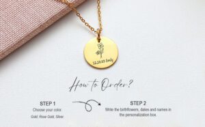 Birth Flower Necklace – Dainty Custom Necklace with Birthflower –Custom Name Necklace for Women – Dainty Gift for Mom, Nana,or Memorial Keepsake |