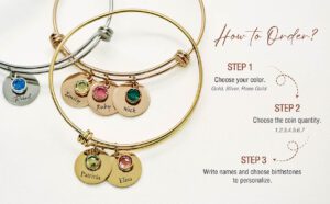 Celebrate family love with this personalized birthstone bracelet, beautifully engraved with kids’ names and adorned with sparkling birthstones. Perfect for moms and grandmas, this custom name bracelet is a meaningful keepsake that symbolizes the bond between loved ones. Ideal for Mother’s Day, birthdays, or Christmas, it’s a timeless piece of family jewelry she’ll treasure forever.