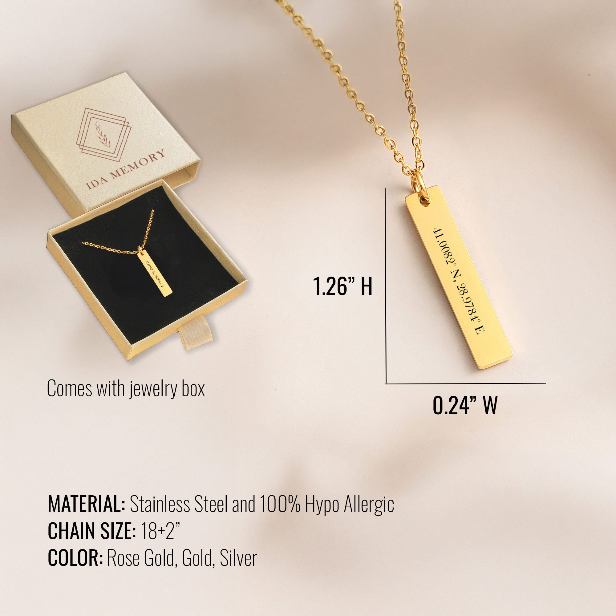 Custom Engraved Date Necklace for Women or Men