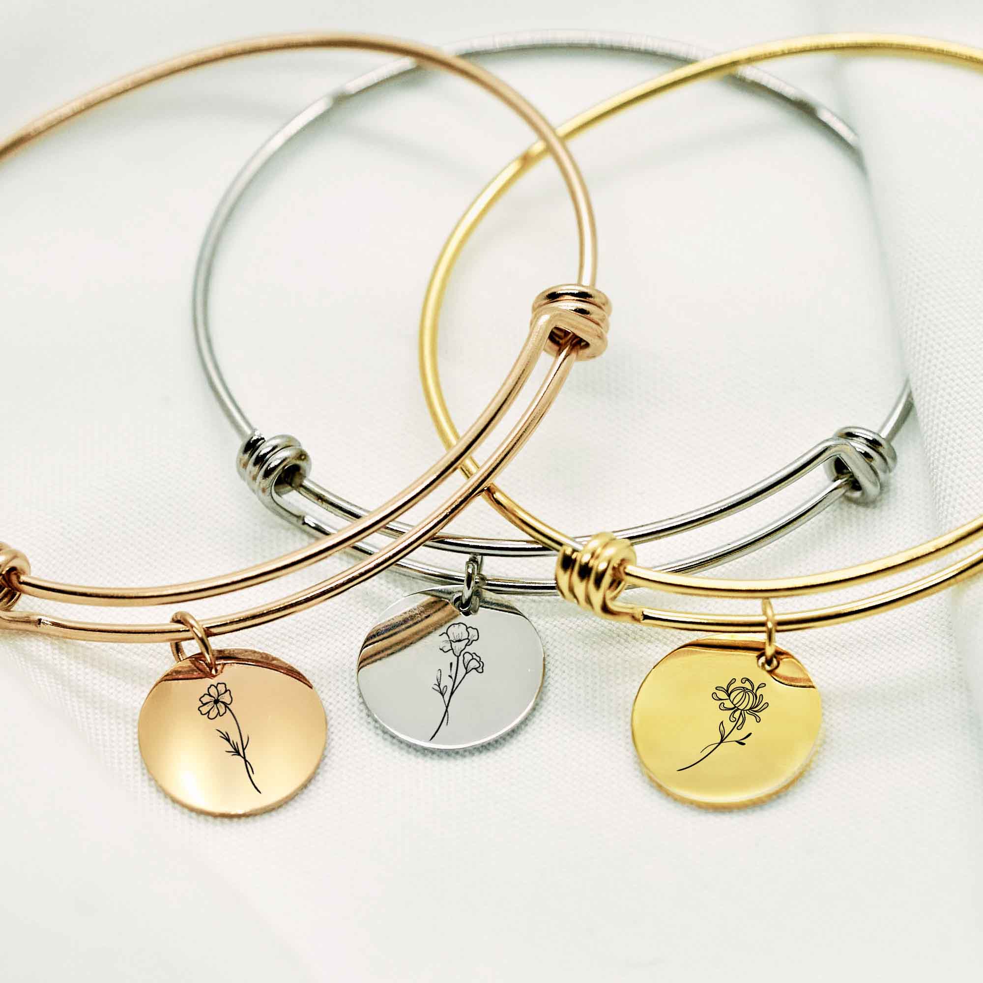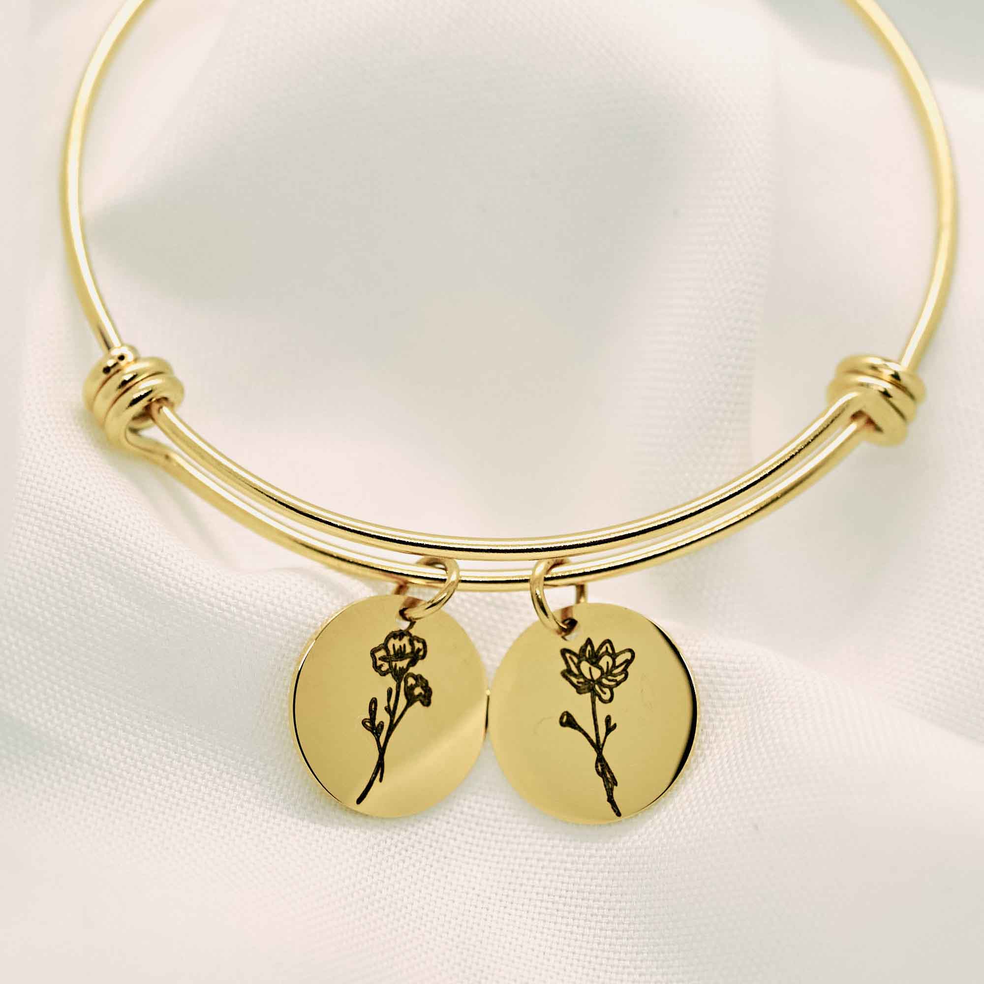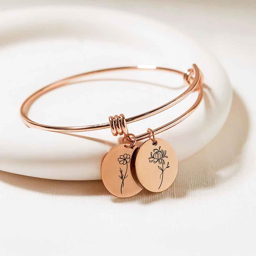 Add a touch of meaning to your style with this custom birthflower bracelet, beautifully engraved with your zodiac flower on the back. This elegant piece combines astrology and nature, making it a truly unique birthday gift for women. Perfect for everyday wear or special occasions, this engraved flower necklace celebrates individuality and beauty — a thoughtful keepsake for yourself or someone you love.