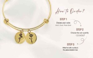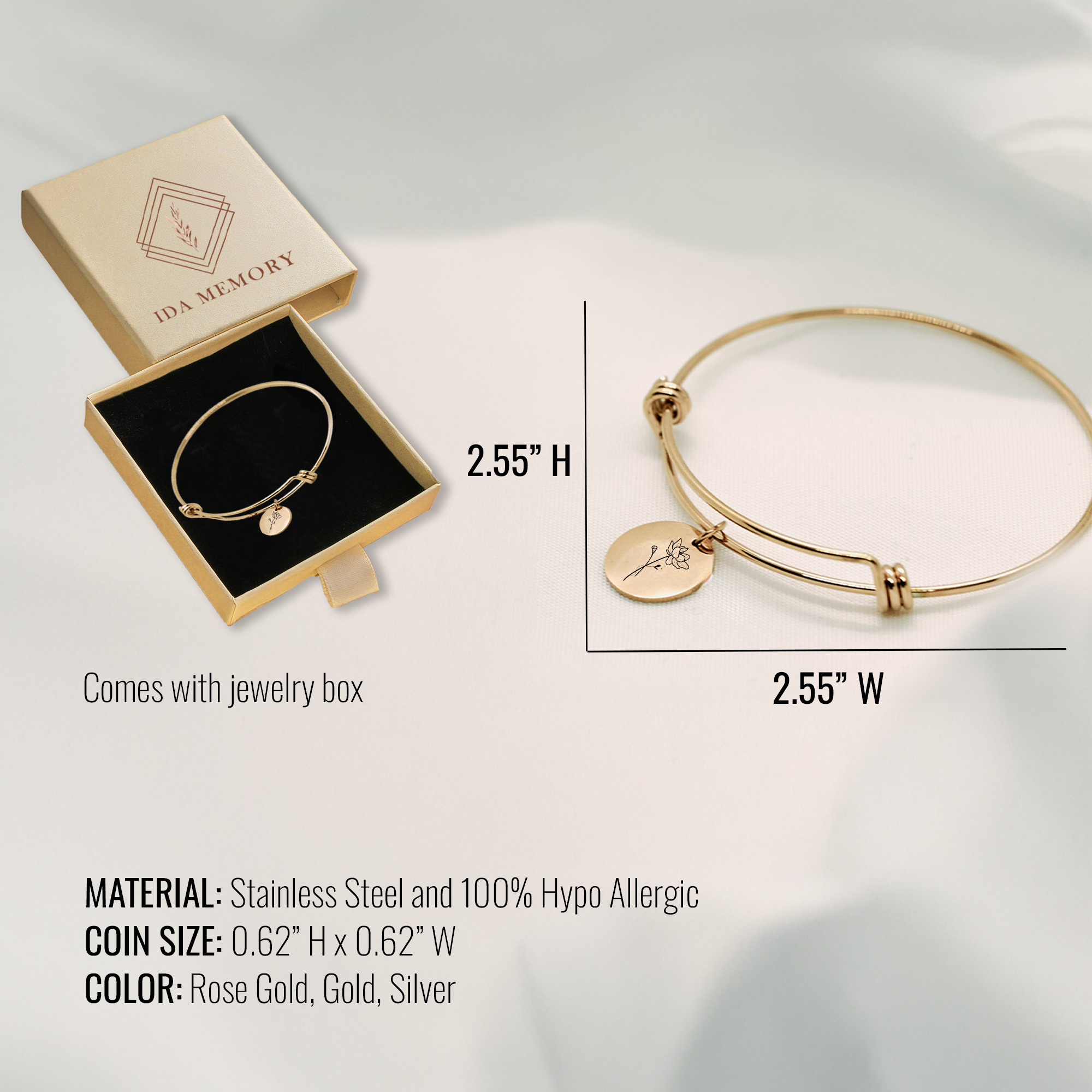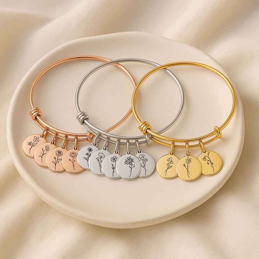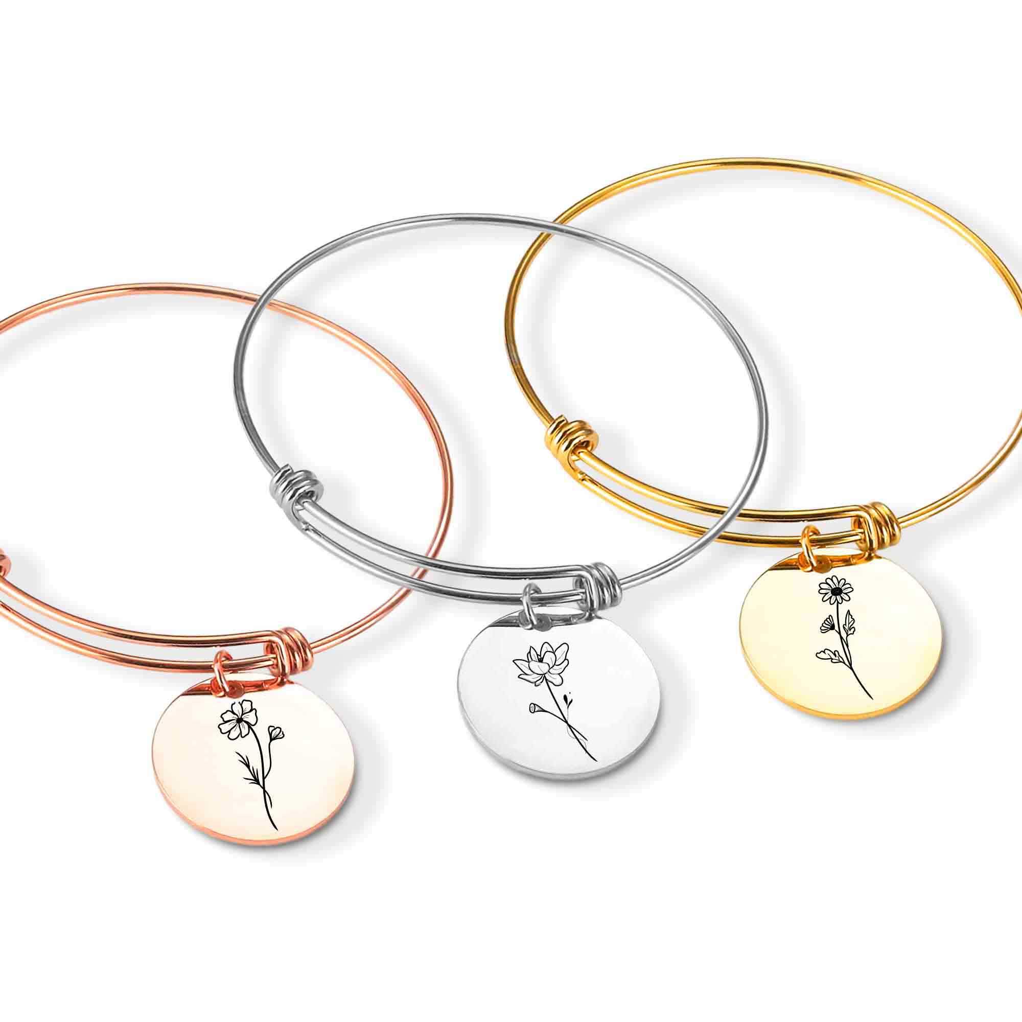 Add a touch of meaning to your style with this custom birthflower bracelet, beautifully engraved with your zodiac flower on the back. This elegant piece combines astrology and nature, making it a truly unique birthday gift for women. Perfect for everyday wear or special occasions, this engraved flower necklace celebrates individuality and beauty — a thoughtful keepsake for yourself or someone you love.