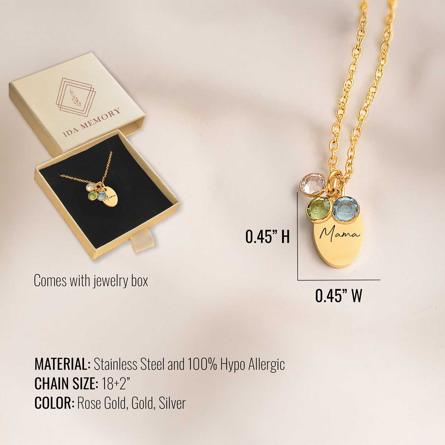 | Number Of Charm and Stone For Each Necklace | 1 Stone, 2Stone, 3 Stone, 4 Stone, 5 Stone, 6 Stone, 7 Stone, 8 Stone, 9 Stone, 10 Stone |