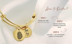 Create a timeless keepsake with this custom fingerprint bracelet, featuring your loved one’s actual fingerprint or handwriting. Crafted from premium 316 stainless steel, this elegant piece is tarnish-resistant and designed for lasting beauty. Perfect as a memorial bracelet or meaningful birthday gift for mom, it carries deep emotional value while maintaining a modern, minimalist style. Available in silver, gold, or rose gold, it’s beautifully packaged and ready to gift — a heartfelt reminder of love, memory, and connection.