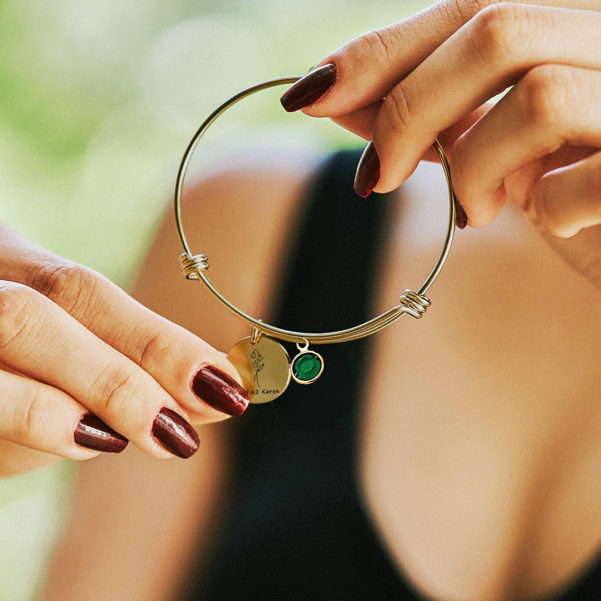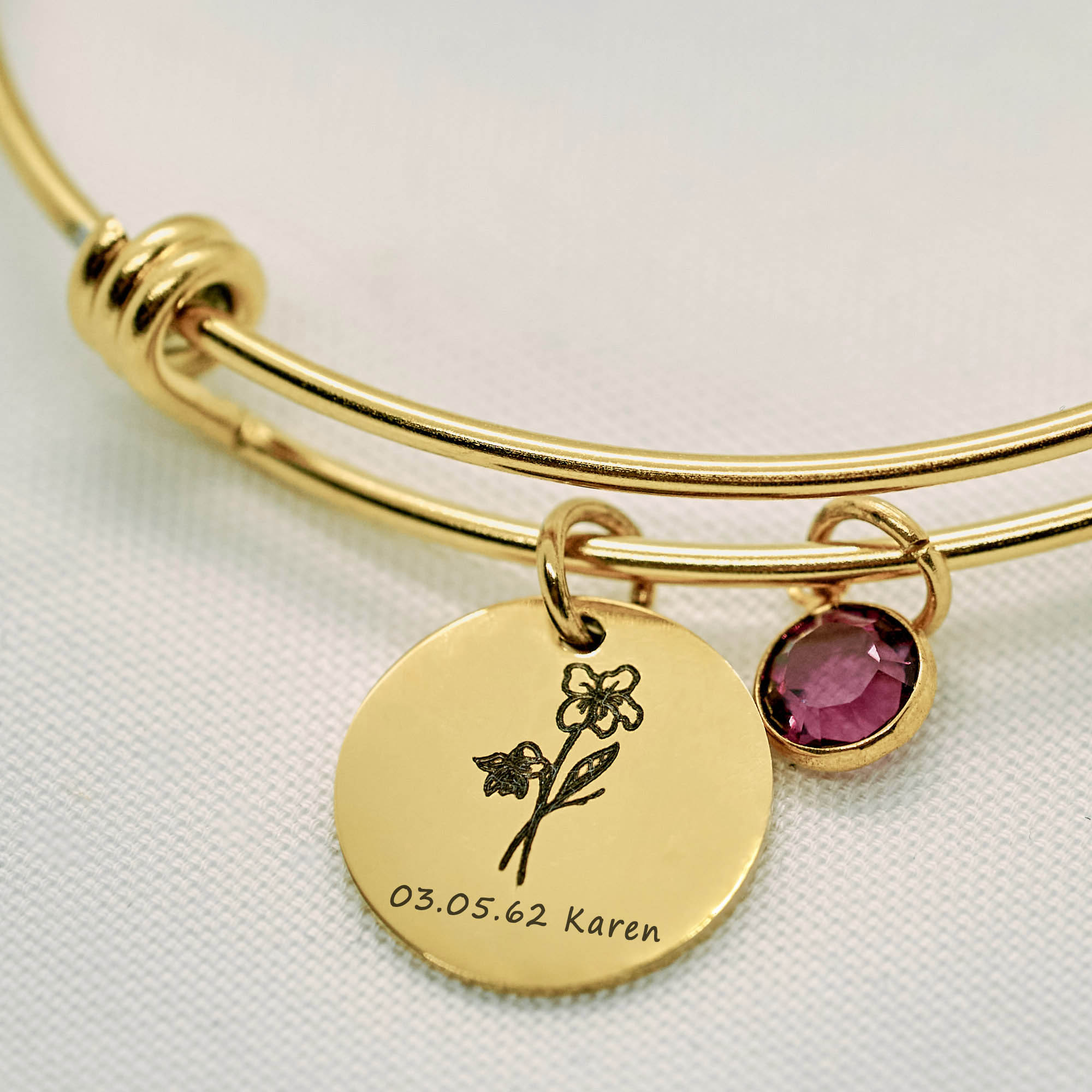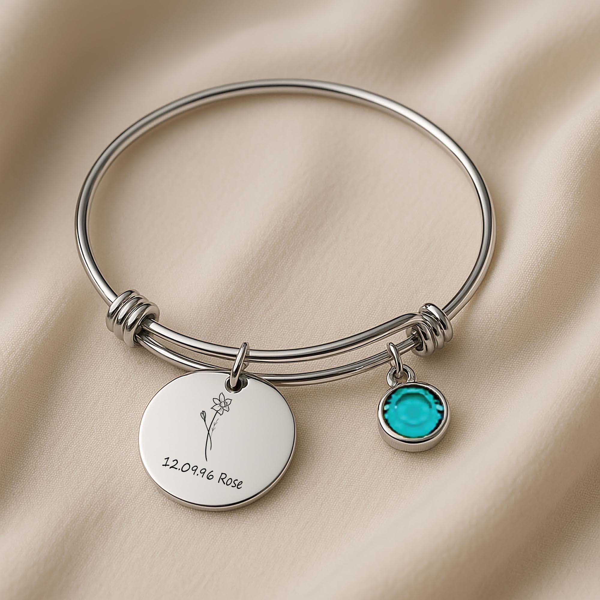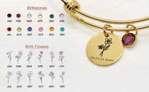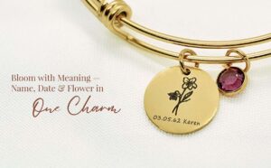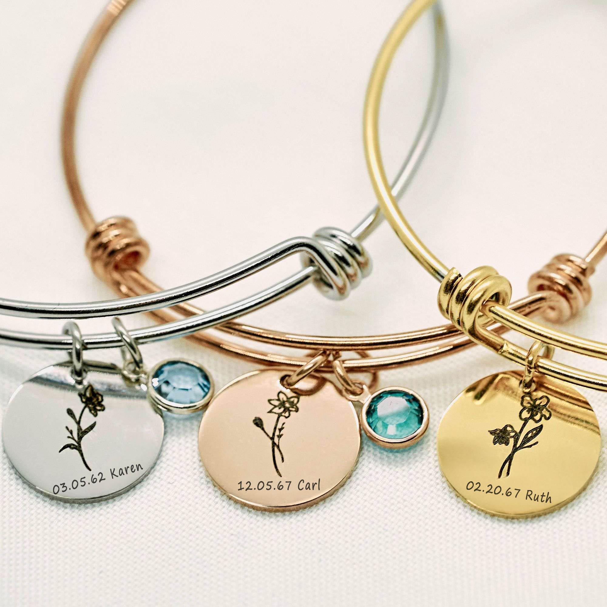 Custom Birth Flower Bracelet for Women – Personalized Engraved Floral Jewelry