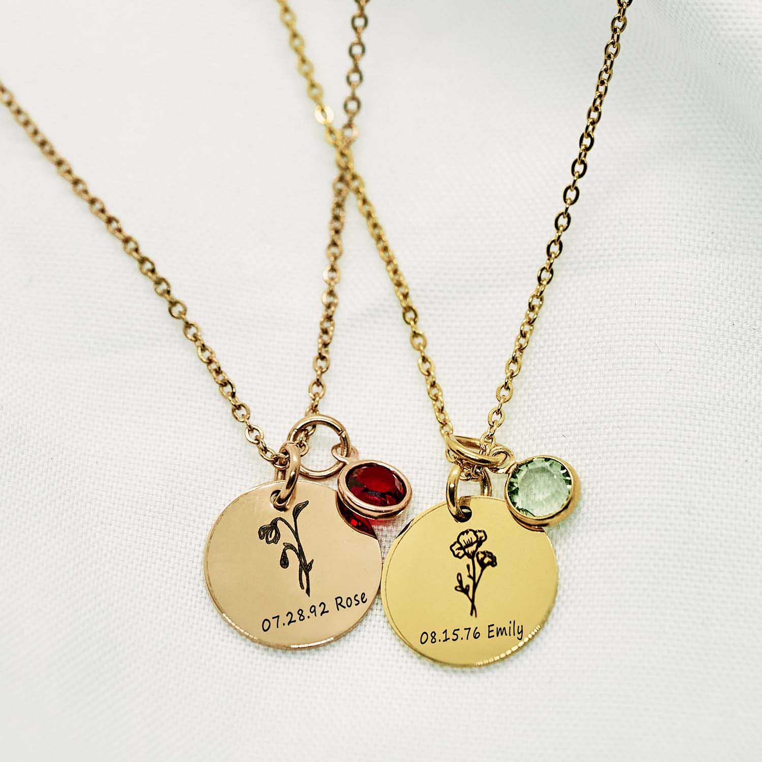 Custom Family Birth Flower & Birthstone Necklace for Women
