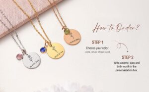 Personalized Birthstone and Name Necklace – Family Jewelry with 8 Names
